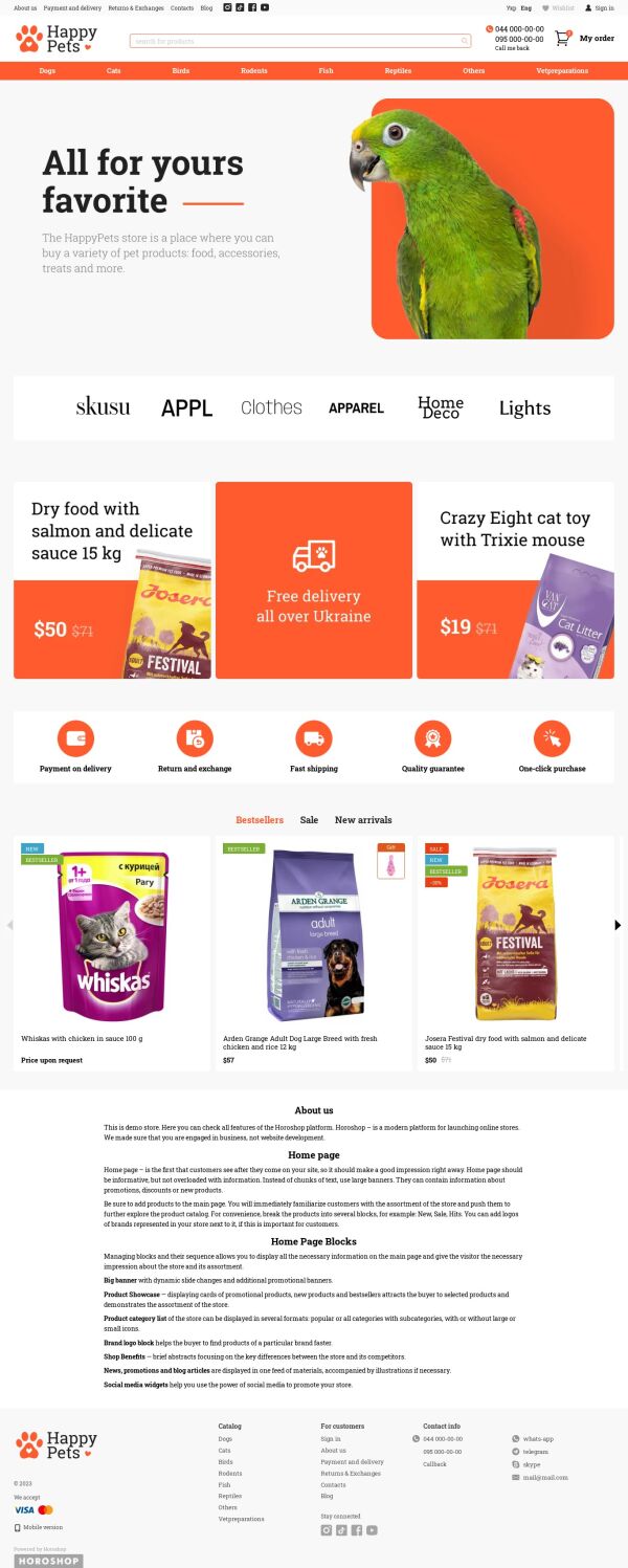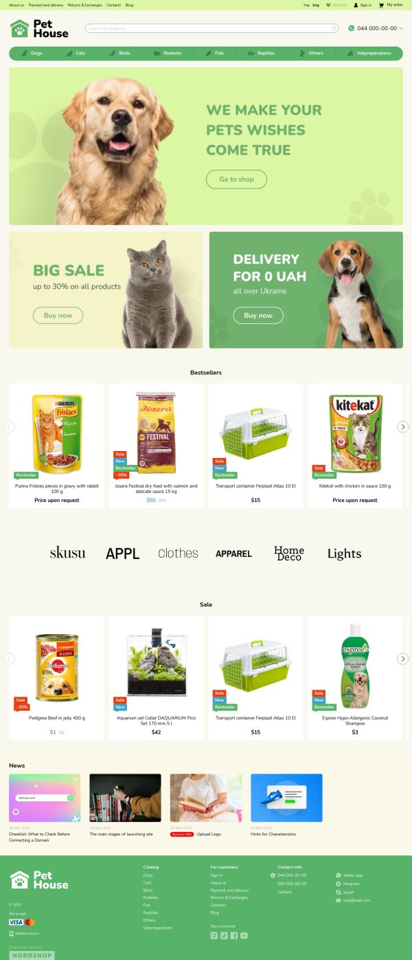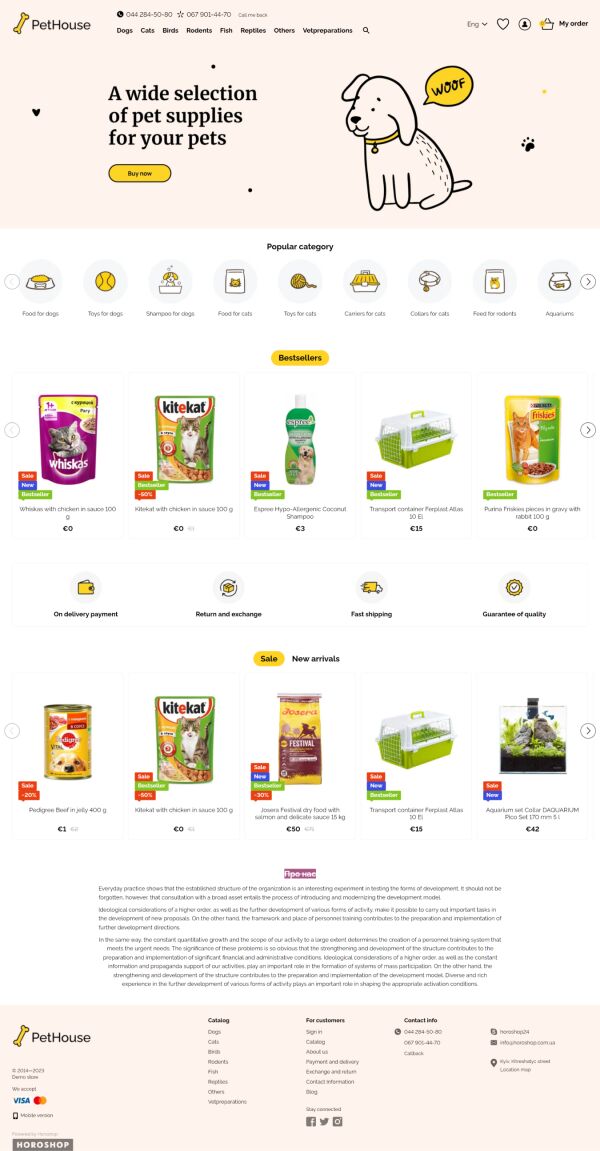 Designul unui magazin online pentru animale de companie se bazează adesea pe culori bogate și elemente grafice tematice. Filtrele joacă un rol special, permițând clienților să aleagă produse specifice pentru animalul lor de companie.