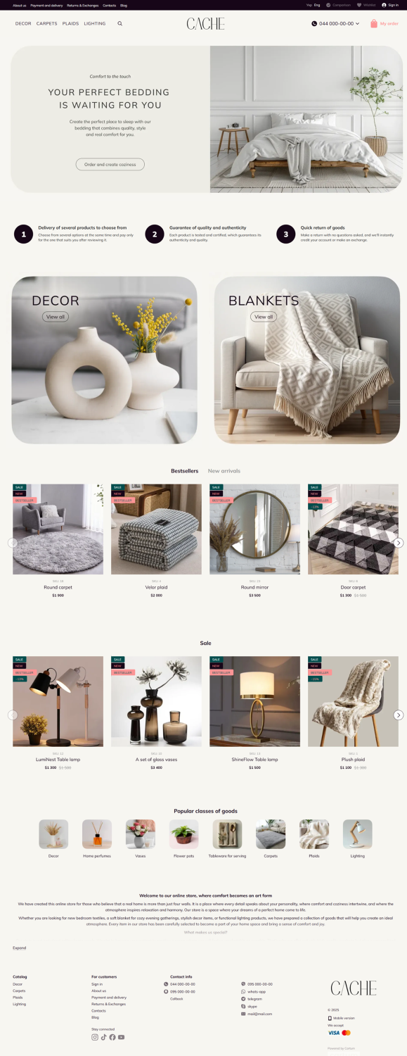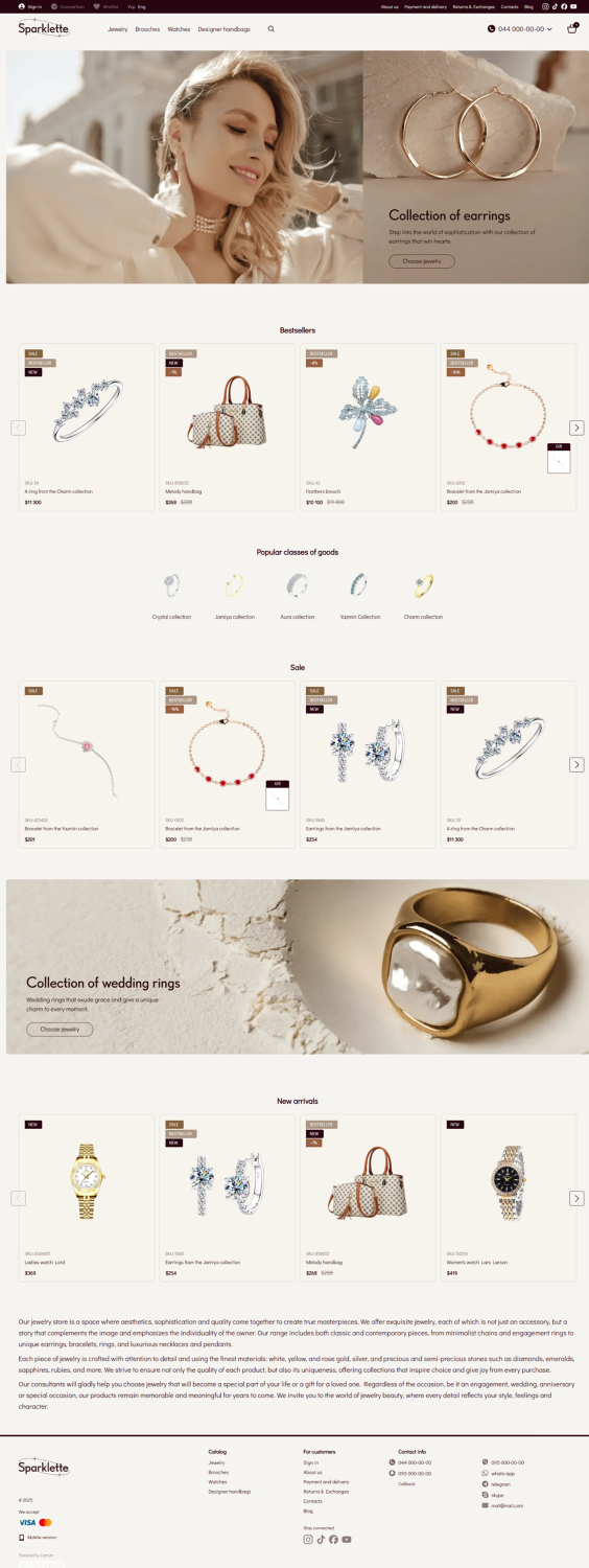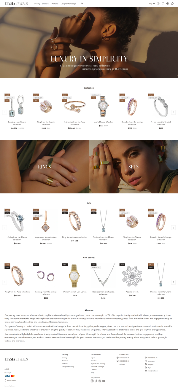 Este important ca magazinele care vând mărfuri scumpe să inspire încredere utilizatorilor, iar acest sentiment este cel mai bine creat de un design discret. Nu ar trebui să faceți designul prea luminos — în loc de culori saturate, este mai bine să acordați preferință tonurilor pastelate mai calme.