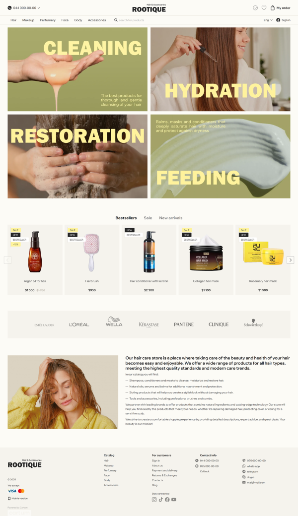 Indiferent de tipul de produs, vizualurile estetice joacă un rol important în nișa cosmeticelor, motiv pentru care bannerele non-standard și bine gândite sunt relevante pe pagina de start. Un alt atribut esențial al unui site convenabil pentru un magazin online de cosmetice este un număr mare de filtre. Adăugați un filtru nu numai în funcție de grupul de produse, ci și de proprietăți, scop, tip de piele, țara de fabricație etc. Acest lucru va economisi în mod semnificativ utilizatorului timp în căutarea produsuluii potrivit.